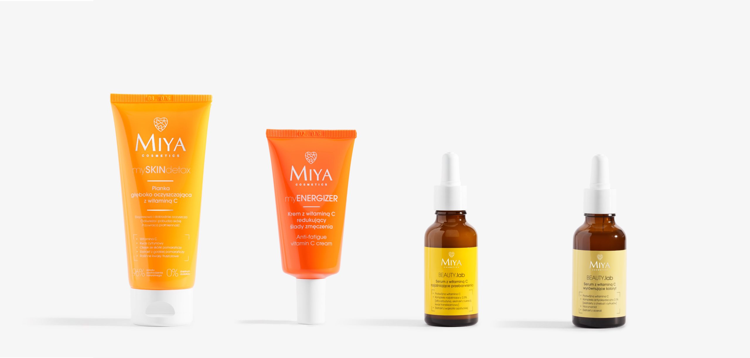 - Dubultais C vitamīns [lipofīlais + hidrofīlais]: efektīvi novērš krāsas maiņu, palielina ādas tvirtumu un elastību, izlīdzina grumbas un līnijas, kā arī samazina apsārtuma redzamību.