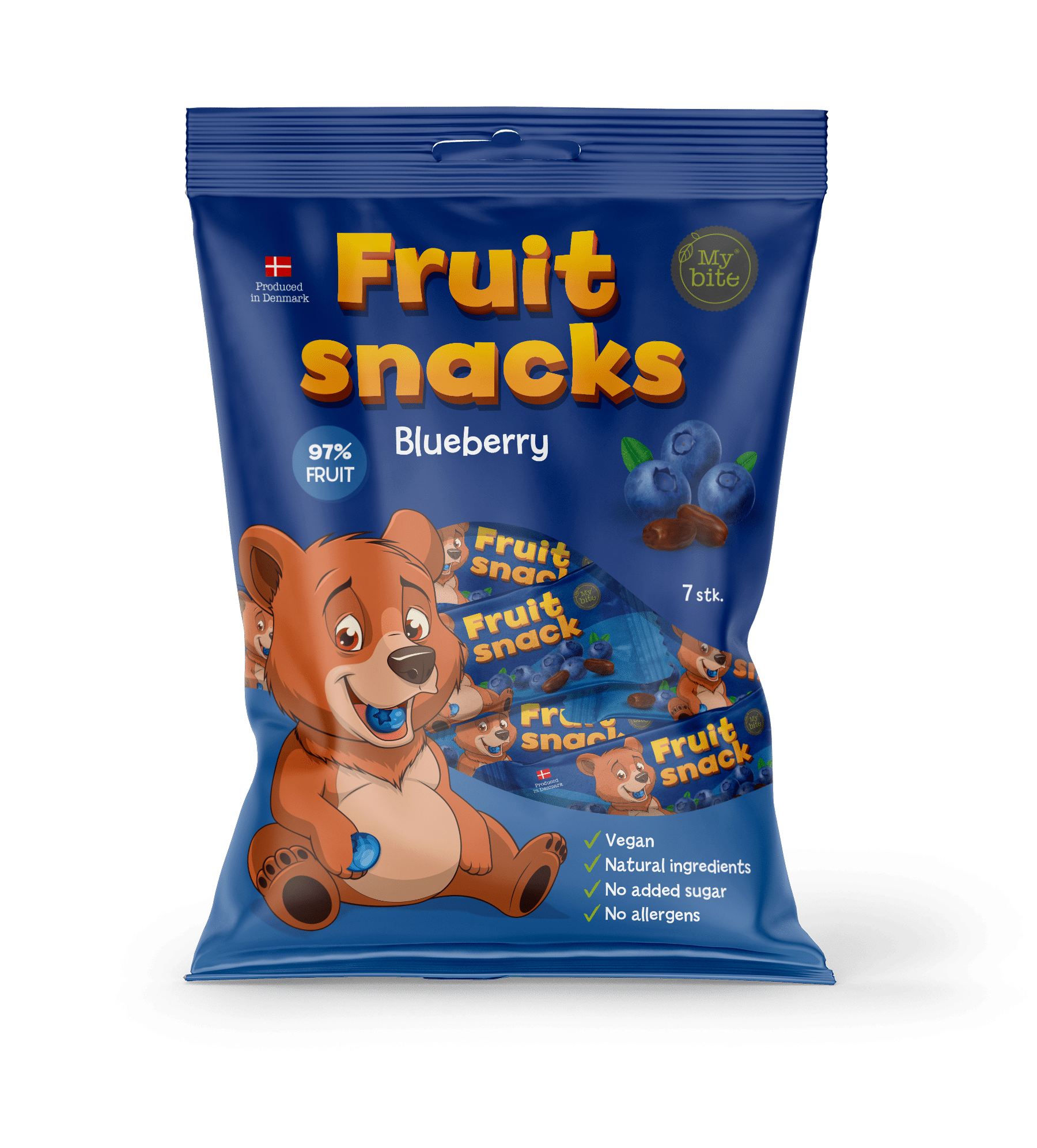 Dateles* (izcelsme ārpus ES), rozīnes, saulespuķu eļļa, melleņu pulveris (1%), melleņu aromatizētājs.