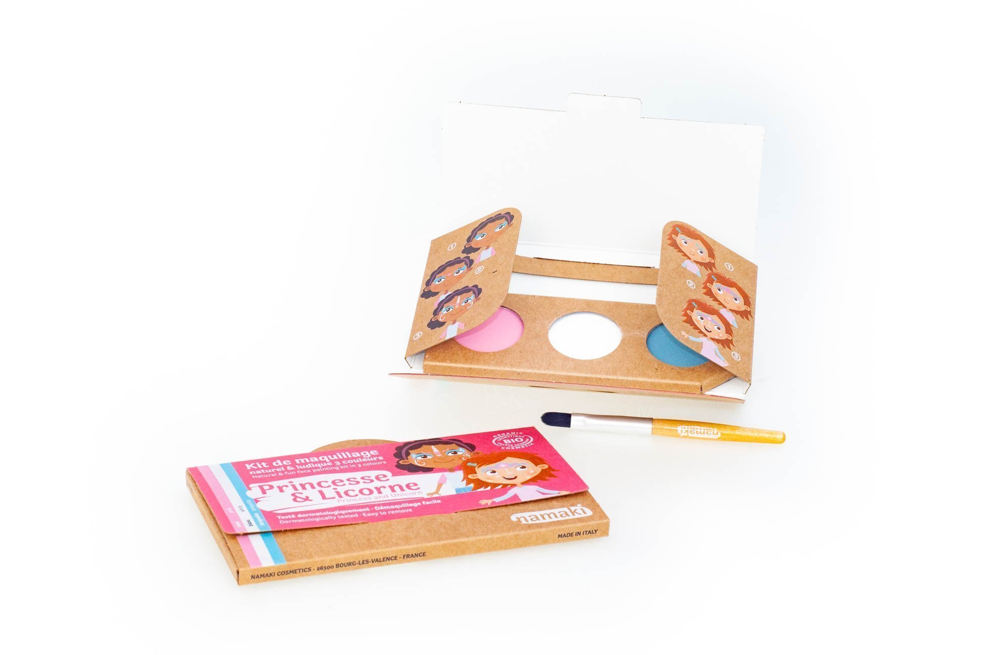 Ar komplektu, kas sastāv no trim krāsām, vari uzkrāsot princesi un vienradzi uz savas sejas, izmantojot komplektā iekļautās instrukcijas.