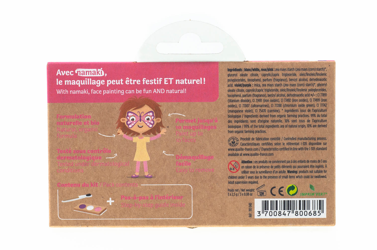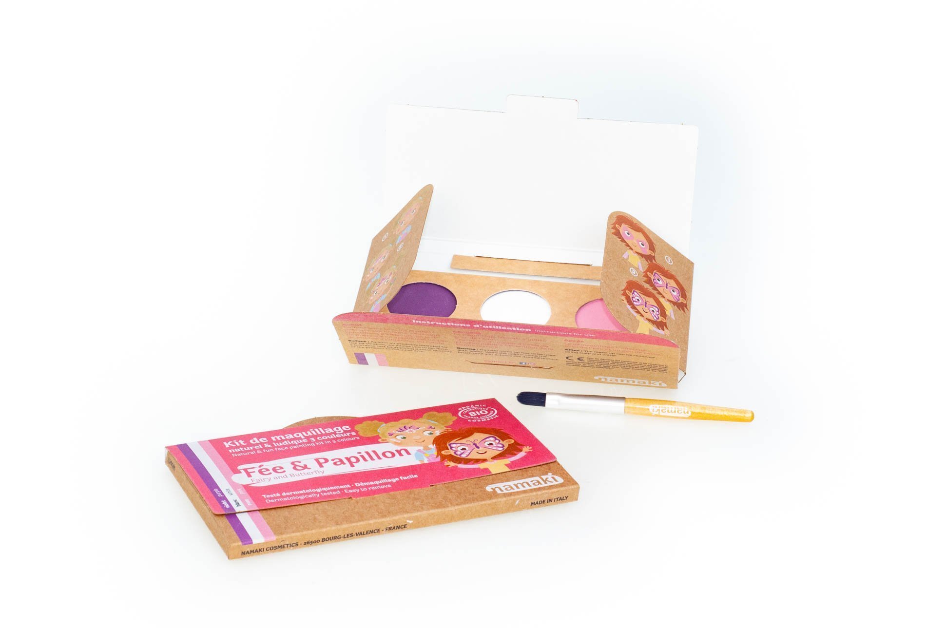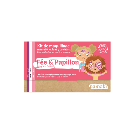 Ar trīs krāsu komplektu un pievienotajām instrukcijām var uzzīmēt savai sejai feju un tauriņu.