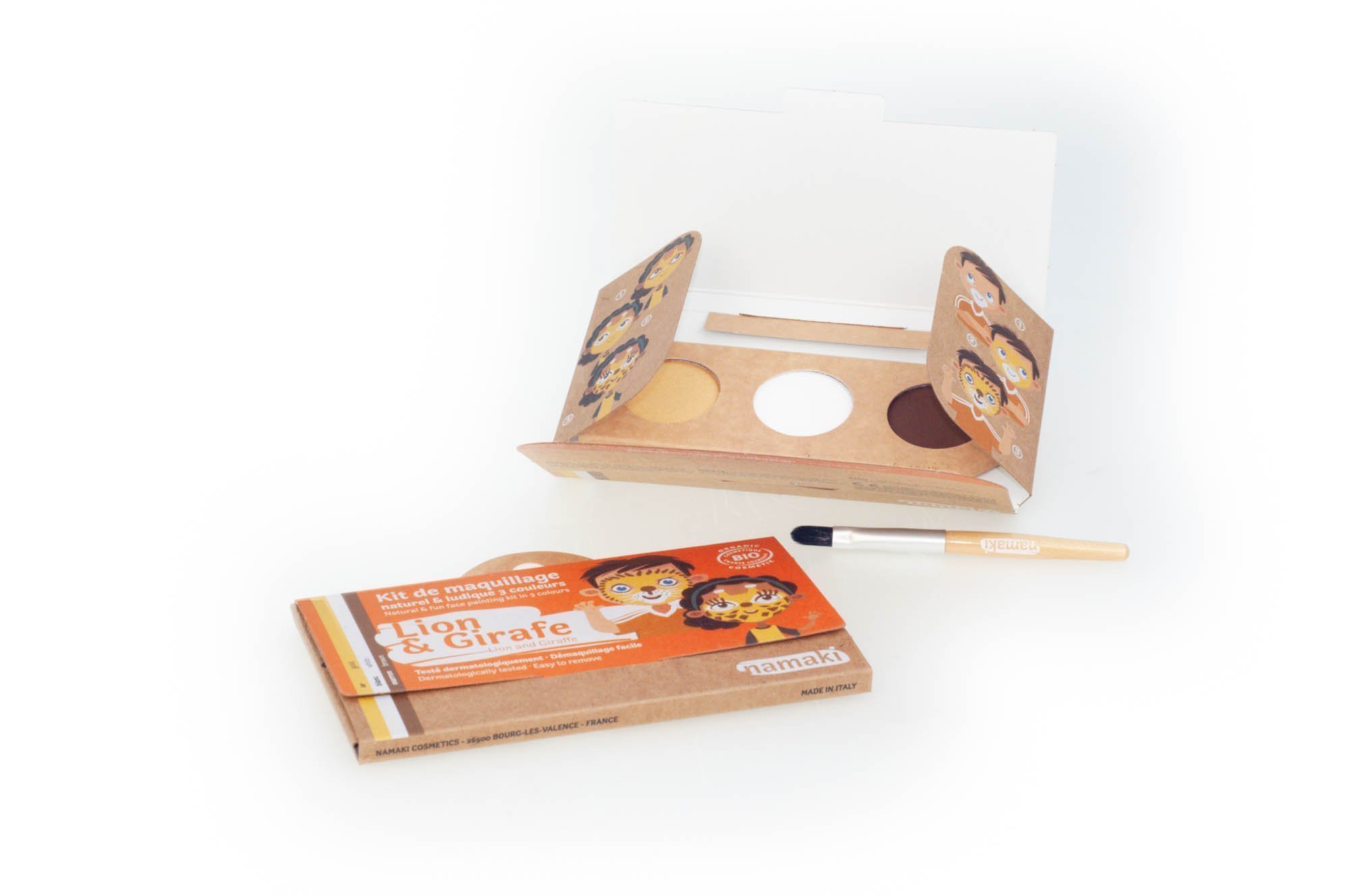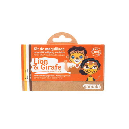 Ar trīs krāsu komplektu varat uzzīmēt žirafi un lauvu uz savas sejas, izmantojot komplektā iekļauto rokasgrāmatu.