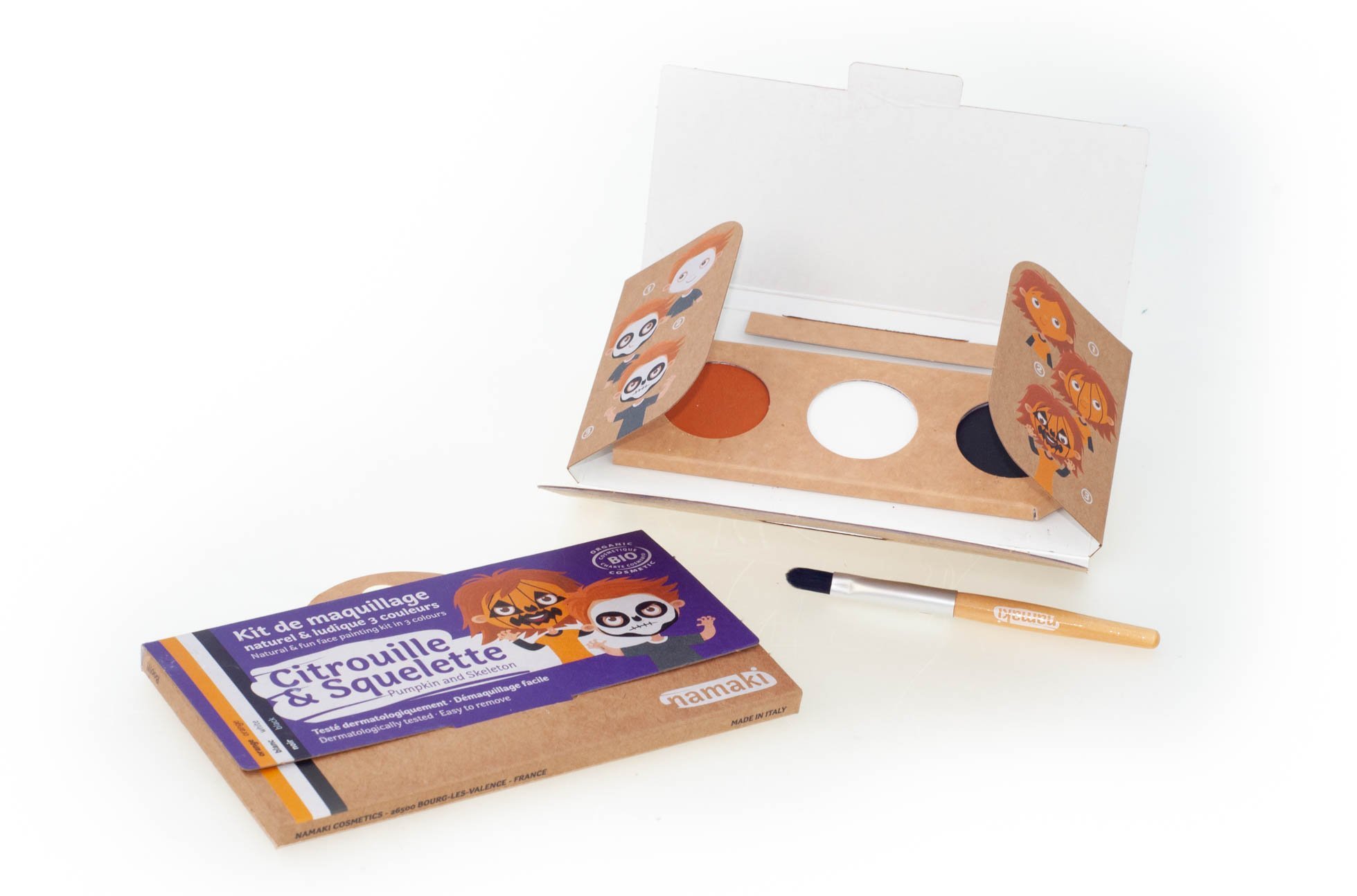 Ar trīs krāsu komplektu un komplektā iekļautajām instrukcijām Tu vari uzkrāsot gan ķirbi, gan skeletu uz sejas.