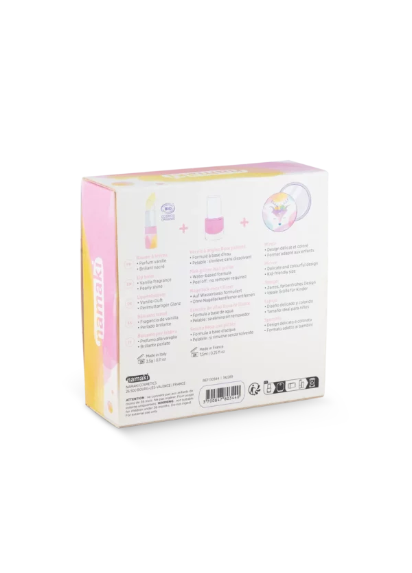 Skaisti iepakotais bērnu kosmētikas komplekts apvieno prieku, radošumu un draudzīgu formulu ādai. Izgatavots no dabīgām un organiskām sastāvdaļām, kas piemērotas jutīgai ādai. COSMOS Organic sertifikāts apliecina, ka tas ir veselībai draudzīgs risinājums.