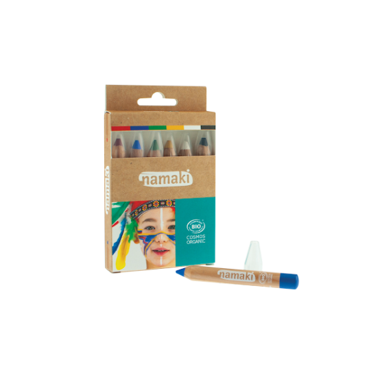 Namaki sejas gleznošanas zīmuļi ir izgatavoti no dabīgām sastāvdaļām un ir droši bērniem, mazgājami ar ūdeni un ziepēm.