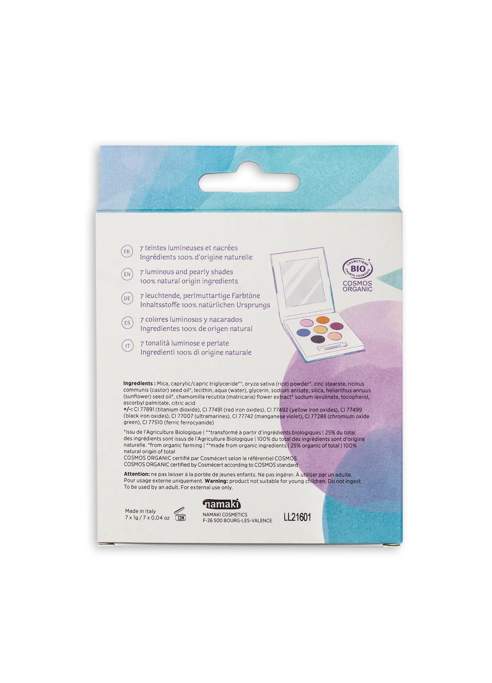 Namaki acu ēnas satur rūpīgi atlasītas sastāvdaļas. Namaki acu ēnas ir 100% dabīgas, drošas bērniem un tās viegli nomazgāt ar ūdeni un ziepēm. Namaki ir vienīgais bērnu dekoratīvās kosmētikas zīmols ar ekosertifikātu.