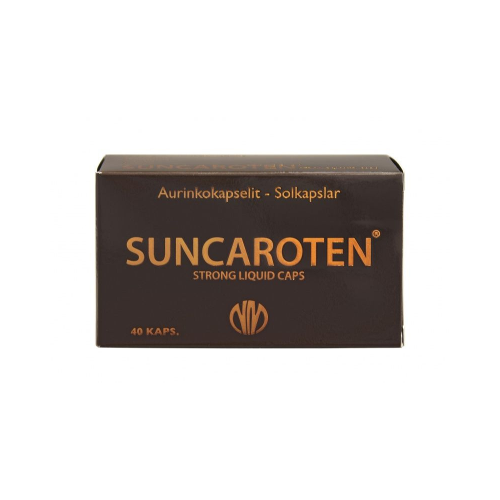 Suncaroten Strong ir unikāla trīs spēcīgu augu pigmentu kombinācija un iedarbība, kas nenomāc ādas pašas D vitamīna sintēzi. Kapsulas satur efektīvu astaksantīna, likopēna un beta-karotīna kombināciju, kas uzlabo ādas aizsardzību pret saules stariem un palīdz iegūt skaistāku un ilgnoturīgāku iedegumu.