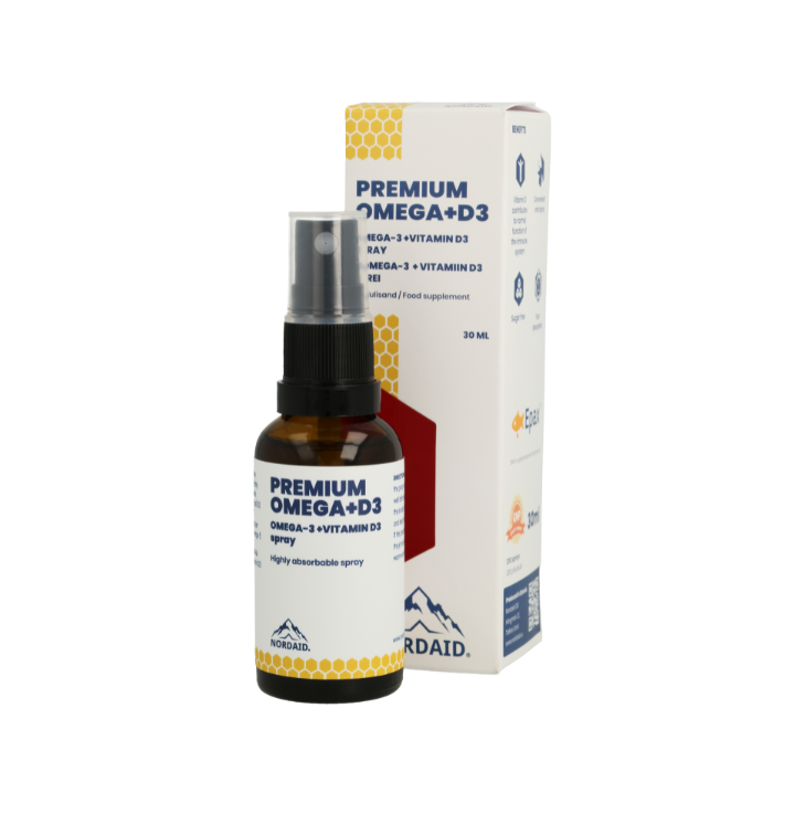 Pieaugušajiem: 5 izsmidzinājumi dienā satur 585 mg zivju eļļas, tostarp 337 mg omega-3 taukskābju, tostarp 168 mg EPA (eikozapentaēnskābe) un 112 mg DHA (dokozaheksaēnskābe), D3 vitamīns 100 μg (4000 SV) (2000%*)