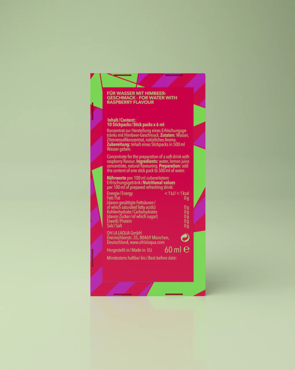 Lietošana: Vienā iepakojumā ir 10 ērti lietojami stiku iepakojumi, katrs 6 ml. Pievienojiet viena stika saturu apmēram 500 ml ūdens. Koncentrāts izšķīst nekavējoties – nav nepieciešams maisīt, kratīt vai gaidīt. Dzēriens ir gatavs dažu sekunžu laikā. Ja vēlaties, izmantojiet vairāk vai mazāk ūdens, lai panāktu sev piemērotu garša stiprumu.