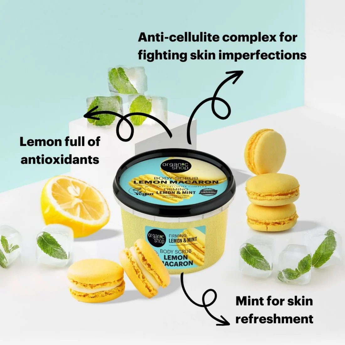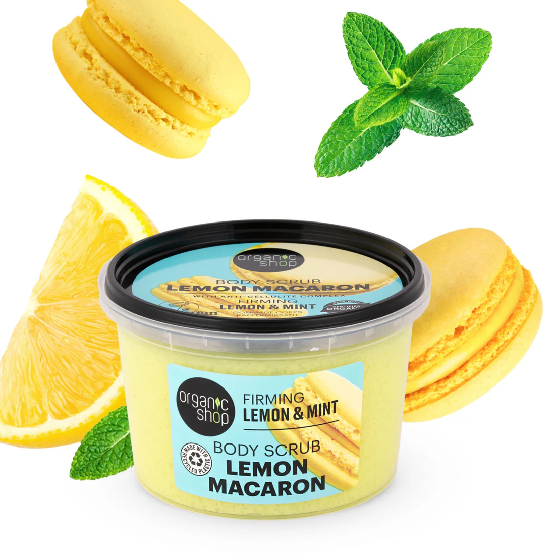 Mirdzums un vasaras sajūta katrā eksfoliācijā! Šis ādu nostiprinošais ķermeņa skrubis izceļas ar unikālu tekstūru, kas atgādina citronu makarūnu, un aptver jūsu ādu ar atsvaidzinošu citrusaugļu konfekšu aromātu.