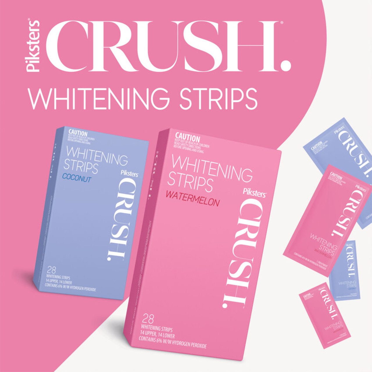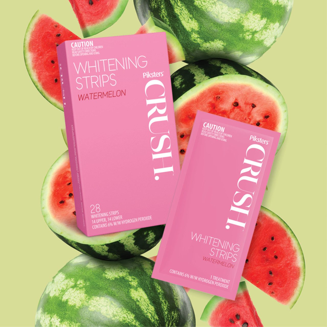 Izmēģiniet Piksters® CRUSH® arbūzu balinošās plāksnītes un izbaudiet gaišāku un baltāku smaidu, kas piesaista skatienus un aizkustina sirdis!