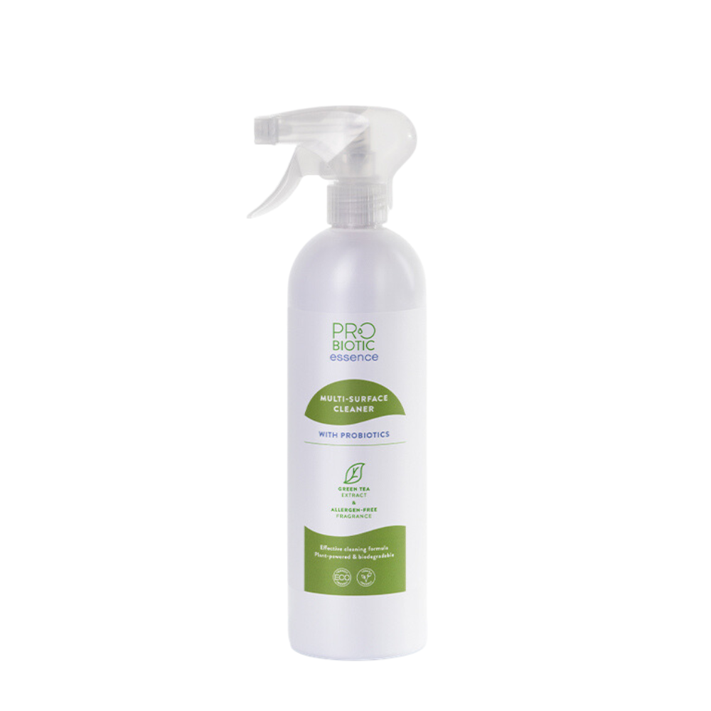 PROBIOTIC ESSENCE nodrošina, ka jūsu mājīgā māja ir droša un tīra. Mūsu daudzfunkcionālais tīrīšanas līdzeklis ir izgatavots no augstas kvalitātes, dabīgām, uz augu bāzes ražotām bioloģiski noārdāmām sastāvdaļām un probiotiķiem, kas īpaši rūpējas par jūsu mājas virsmām un mēbelēm.