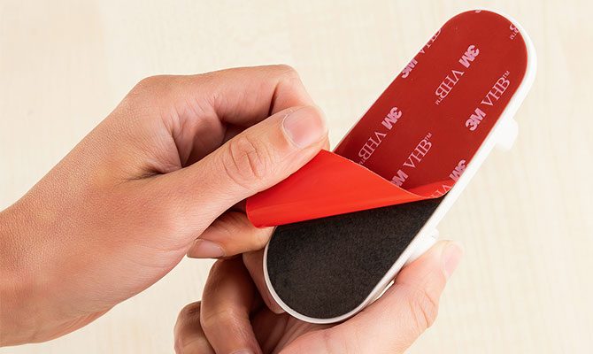 Durvju slēdzis piestiprinās ar izturīgu 3M līmlenti – nav nepieciešama urbšana vai skrūves. Kad aizsargplēve ir noņemta un slēdzis uzstādīts, to var uzreiz lietot. Vajadzības gadījumā slēdzi var vēlāk noņemt bez līmes pēdām vai bojājumiem.