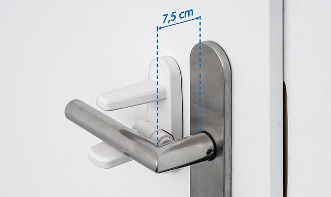 – Der lielākajai daļai standarta durvju rokturu (maks. attālums starp durvīm un rokturi: 7,5 cm)