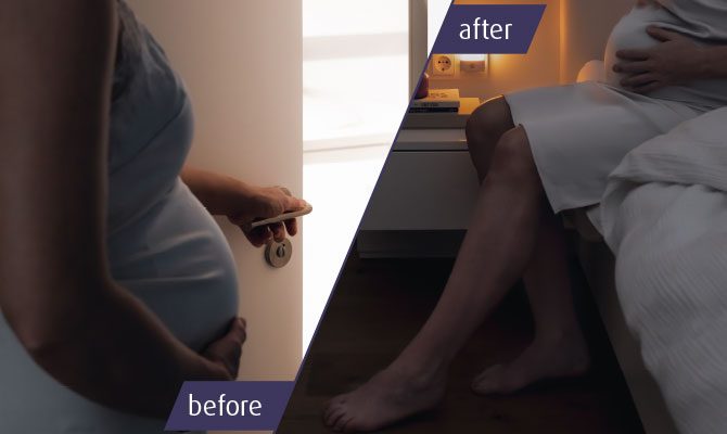 Ideāli piemērots lietošanai arī pēc dzemdībām: nakts mazuļa barošanai, autiņbiksīšu maiņai vai drošai pārvietošanai pa koridoru.
