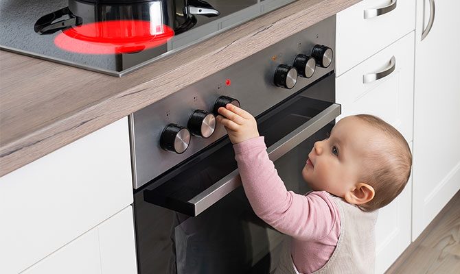 – Novērš bērnu iespēju ieslēgt plīti vai cepeškrāsni