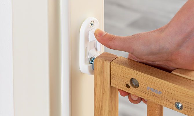 Vārtu platums ir vienmērīgi regulējams no 63 līdz 103,5 cm, ļaujot pielāgoties dažādām ailēm bez papildu pagarināšanas detaļām. Lieliski piemēroti gan standarta durvju ailēm, gan platākām pārejām.
