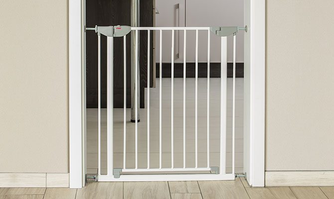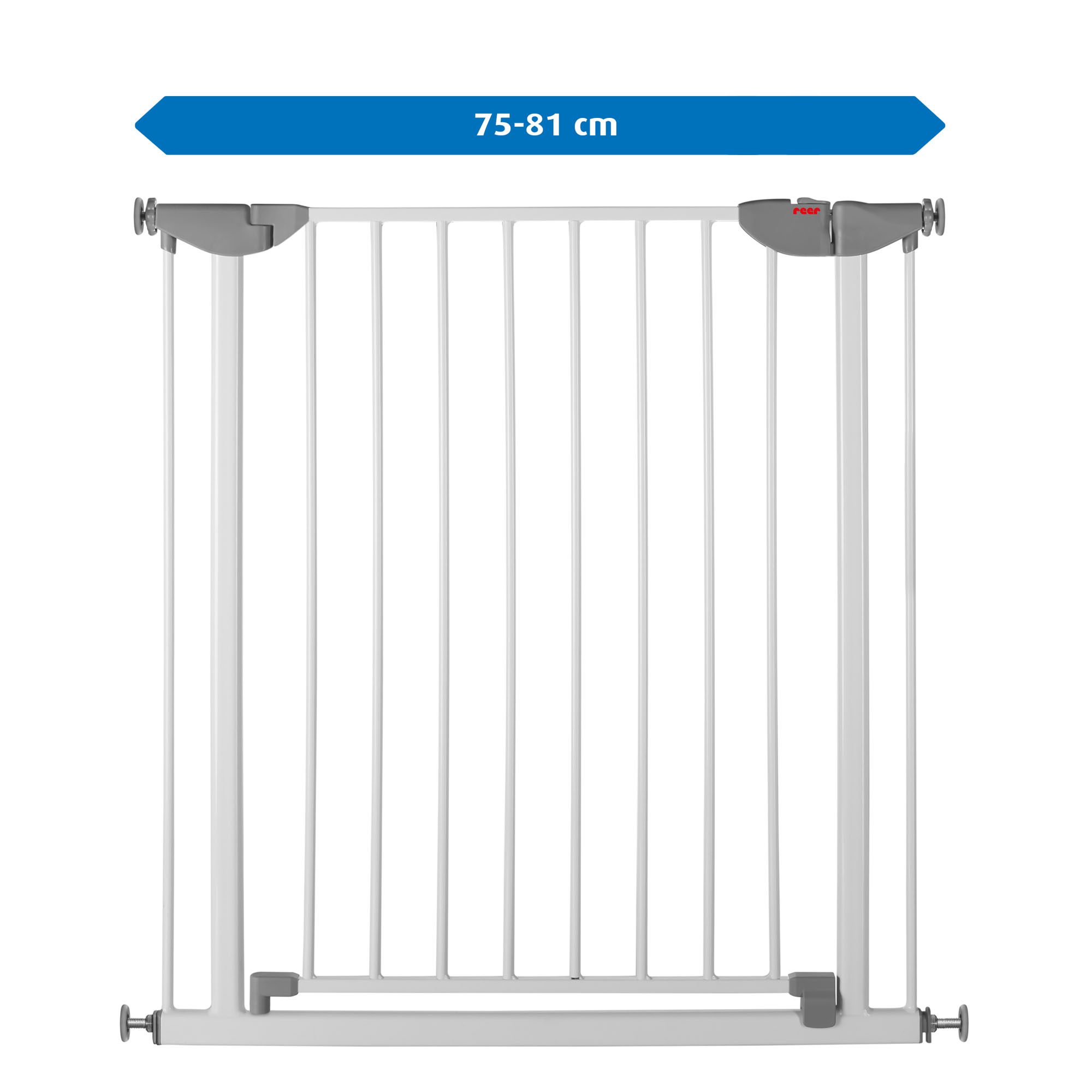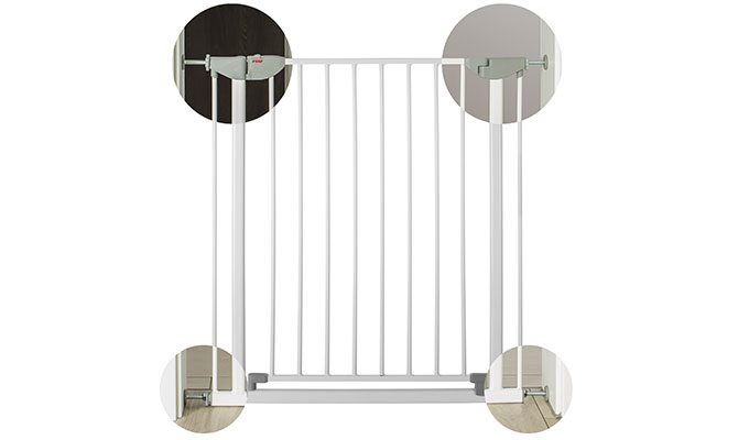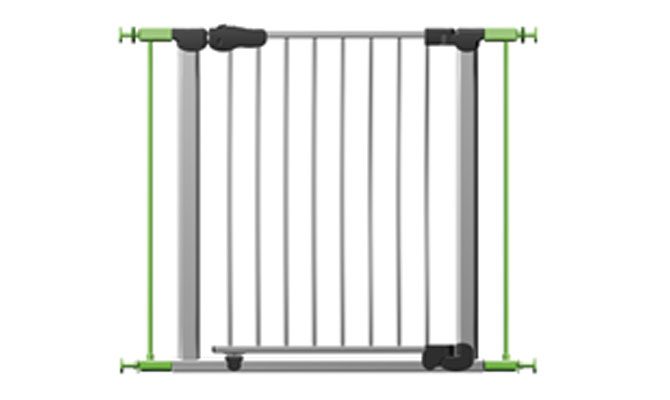 Vārti der durvju ailēm ar platumu no 75 līdz 81 cm. Ja nepieciešams, tos var pagarināt līdz 95 cm, izmantojot līdz diviem papildu pagarinājumiem (nopērkami atsevišķi). Vārti veras abos virzienos, tādējādi ir ērti ikdienas lietošanā. Ja vēlaties ierobežot atvēršanas virzienu, var izmantot komplektā iekļauto aizturi.