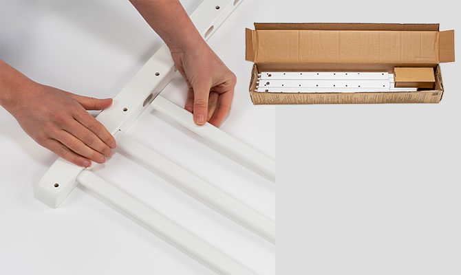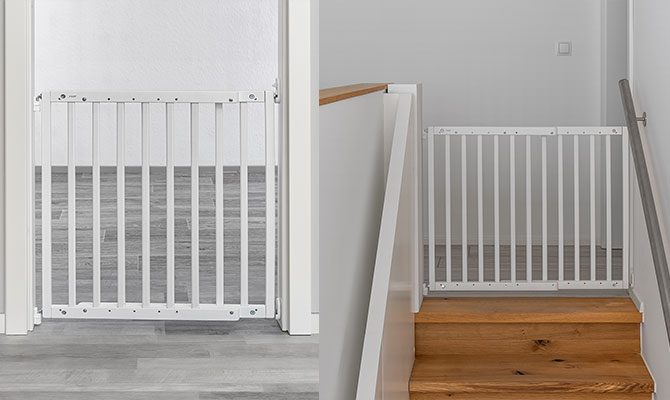 Pateicoties modulārajai savienošanas sistēmai, drošības vārtus var uzstādīt mazāk nekā 10 minūtēs bez sarežģītiem instrumentiem.