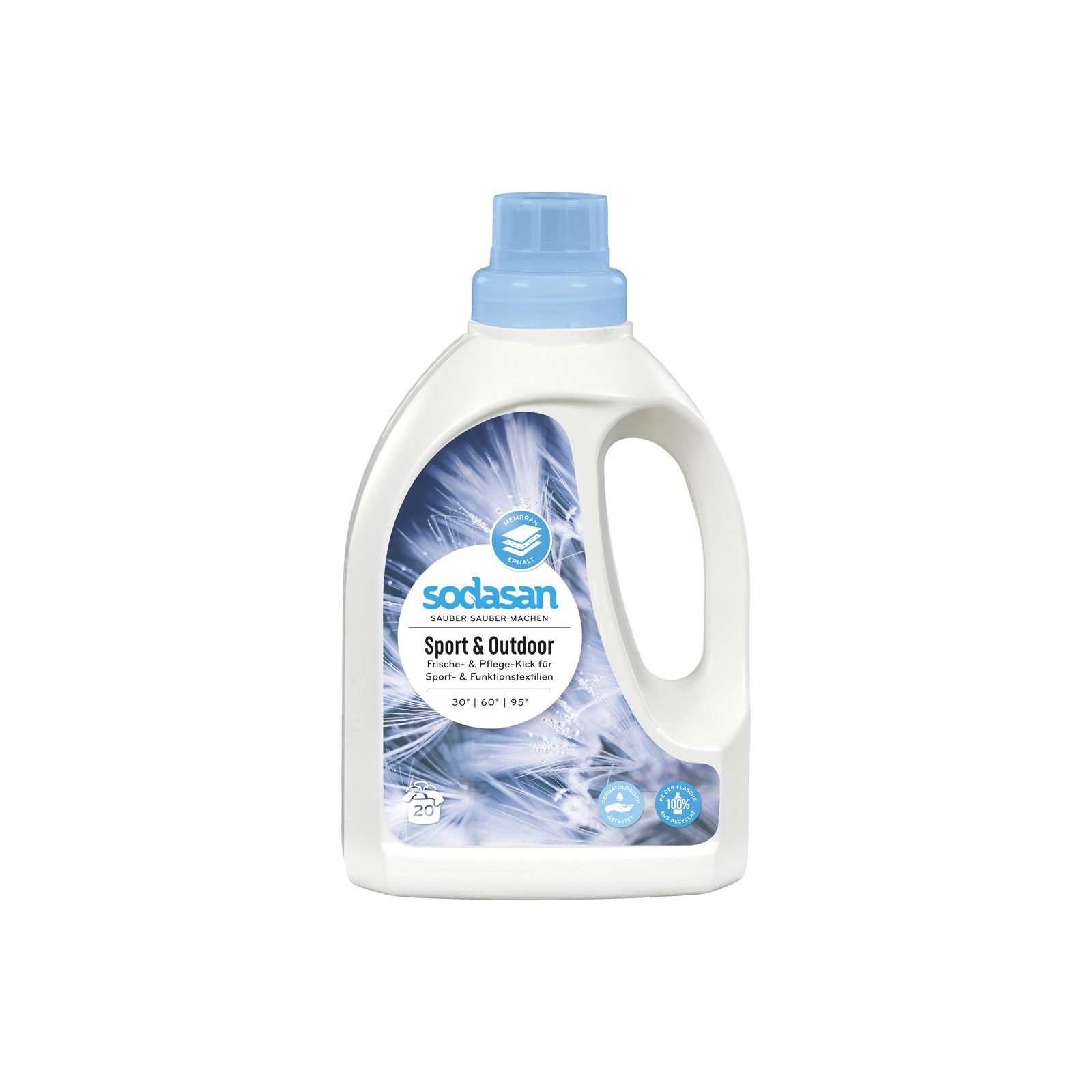 Sodasan Sports & Outdoor mazgāšanas želeja rūpīgi attīra funkcionālo un brīvā laika apģērbu. Higiēnisks svaigums sporta apģērbam mazgājot 30°C, 60°C un 95°C temperatūrā. Piemērota dabīgajām šķiedrām un speciāliem audumiem, piemēram, mikrošķiedrām vai membrānām. Sport & Outdoor mazgāšanas līdzeklis neitralizē nepatīkamas smakas un piešķir apģērbam maigu svaigumu. Piemērots gan veļas mašīnai, gan mazgāšanai ar rokām. Nesatur optiskos balinātājus. Funkcionālo apģērbu nemazgāt ar mīkstinātājiem.
