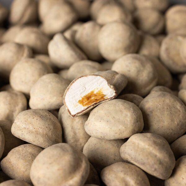 Zefīri ar karameles pildījumu, pārklāti ar Beļģijas baltās šokolādes un karameles kārtu. Starp šokolādes slāņiem ir pārkaisīta kafija – ārkārtējs kārums katram kafijas cienītājam!