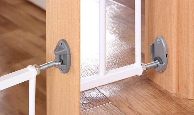 Drošības vārti tiek nostiprināti tieši pie sienas ar skrūvēm, tāpēc tiem nav nepieciešams spiediena rāmis vai apakšējā sliekšņa josla. Tas nodrošina brīvu pāreju un novērš iespējamību paklupt, padarot šo risinājumu īpaši piemērotu uzstādīšanai kāpņu augšdaļā. Tā kā vārtiem nav sānu statņu no spiediena rāmja, tiek saglabāts pilns durvju vai ejas platums.
