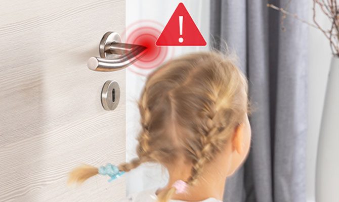 Bērniem kļūstot kustīgākiem un sākot rotaļāties, durvju rokturi galvas augstumā var kļūt par potenciālu apdraudējumu. Mūsu durvju roktura pārvalks palīdz novērst sāpīgus triecienus un aizsargā arī sienas un mēbeles no bojājumiem, ko izraisa pēkšņa durvju atvēršana.