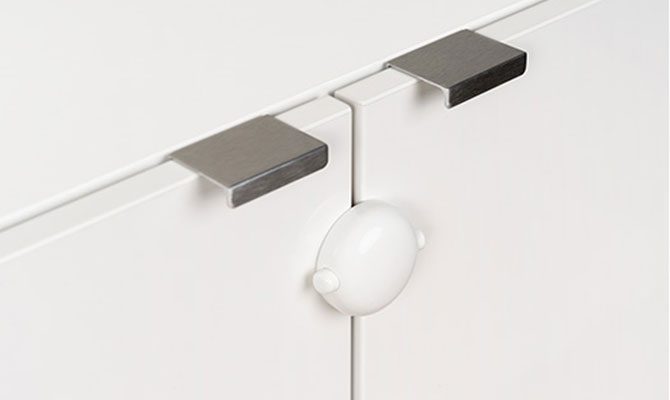 Skapīšu un atvilktņu saturs paliek droši aizslēgts, bet pieaugušie slēdzeni var viegli atvērt ar vienu roku. Komplektā ir arī ērts magnētiskais sienas turētājs, kurā var iekarināt slēdzeni, kad skapis ir atvērts. Sarkanais marķējums atgādina par slēdzenes aktivizēšanu, kad tuvumā ir bērni.