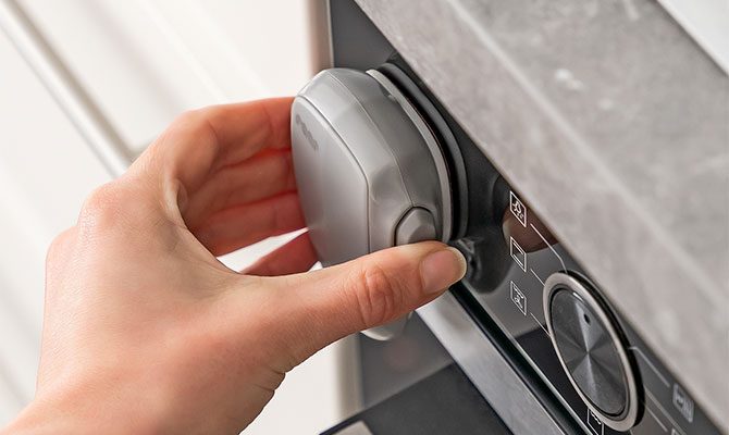 Slēdzis ātri un ērti piestiprinās – noņemiet aizsargplēvi un uzlīmējiet slēdzi uz cepeškrāsns. Karstumizturīgā 3M VHB līmlente nodrošina drošu stiprinājumu pat augstā temperatūrā. Kad slēdzis vairs nav nepieciešams, to var noņemt, neatstājot pēdas vai bojājumus.