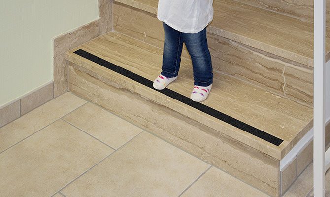 Piemērota lietošanai uz kāpņu pakāpieniem, ieejām, rampām, kāpnes pakāpieniem un citām slidenām virsmām, lai palīdzētu novērst bīstamus kritienus.