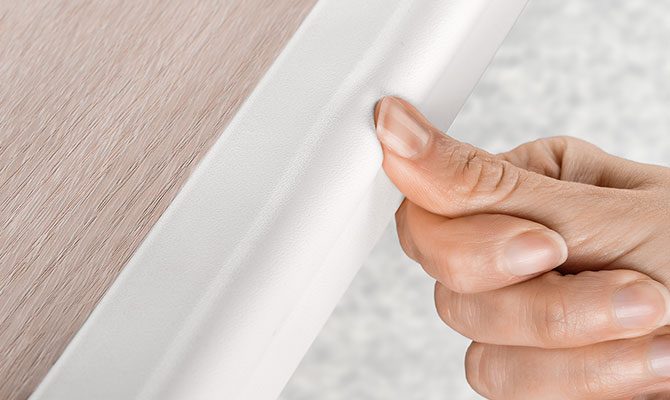 Maliņu aizsargu var saīsināt līdz vēlamajam garumam (iepakoti divi 1 m garumi). Uzstādīšanai notīriet virsmu, pielīmējiet komplektā iekļauto līmlenti pie mēbeles, novietojiet aizsargu un stipri piespiediet uz vienu minūti. Kad tas vairs nav nepieciešams, var noņemt bez pēdām un bojājumiem.