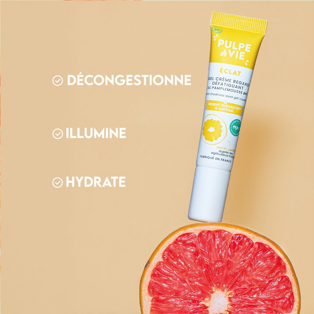 Gels-krēms satur Kirgastav Oléoactif® augu kompleksu, kas palīdz samazināt tumšo loku izskatu, līdzsvaro melanīna ražošanu un piešķir acu zonai gaišāku, vienmērīgāku toni. Dabīgais kofeīns stimulē mikrocirkulāciju, mazina pietūkumu un piešķir svaigāku, atpūtusies izskatu. Bioécolia® prebiotikas atbalsta ādas mikrobiomu, nomierina kairinājumus un stiprina ādas dabīgo aizsargbarjeru.