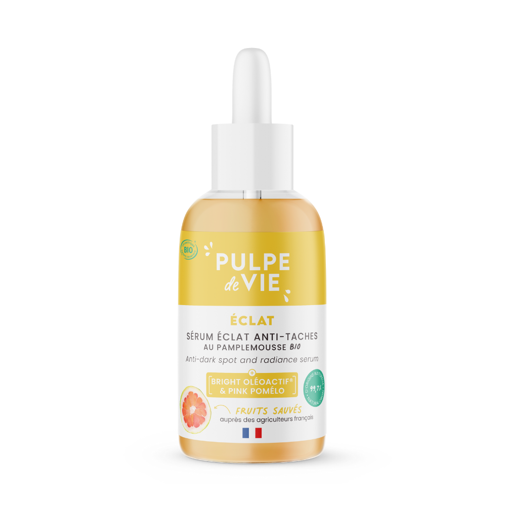 Šī mirdzuma seruma pamatā ir Bright Oléoactif® + Pink Pomelo komplekss, kas palīdz palēnināt pārmērīgu melanīna veidošanos, samazina esošos pigmentācijas plankumus un novērš jaunu veidošanos. Rozā pomelo, kas pazīstams ar augsto C vitamīna un antioksidantu saturu, veicina šūnu atjaunošanos un palīdz atjaunot ādas dabīgo mirdzumu.