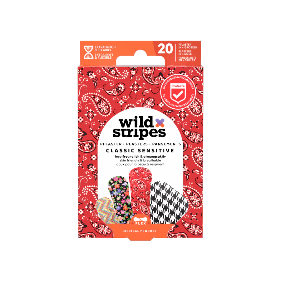 “Wild Stripes Classic Sensitive” modes prece ir ES atbilstošs medicīniskais produkts, kas piedāvā vairāk nekā tikai aizsardzību. Šie jautrie raksti un pastelkrāsu plāksterīši piešķir pozitīvu noskaņojumu katrai dienai, vienlaikus piedāvājot uzticamu aizsardzību pret mazām brūcēm. Šis komplekts ir ideāli piemērots cilvēkiem ar jutīgu ādu – plāksteri ir ādas draudzīgi, hipoalerģiski un piedāvā ļoti stipru līme arī aktīva dzīvesveida apstākļos.