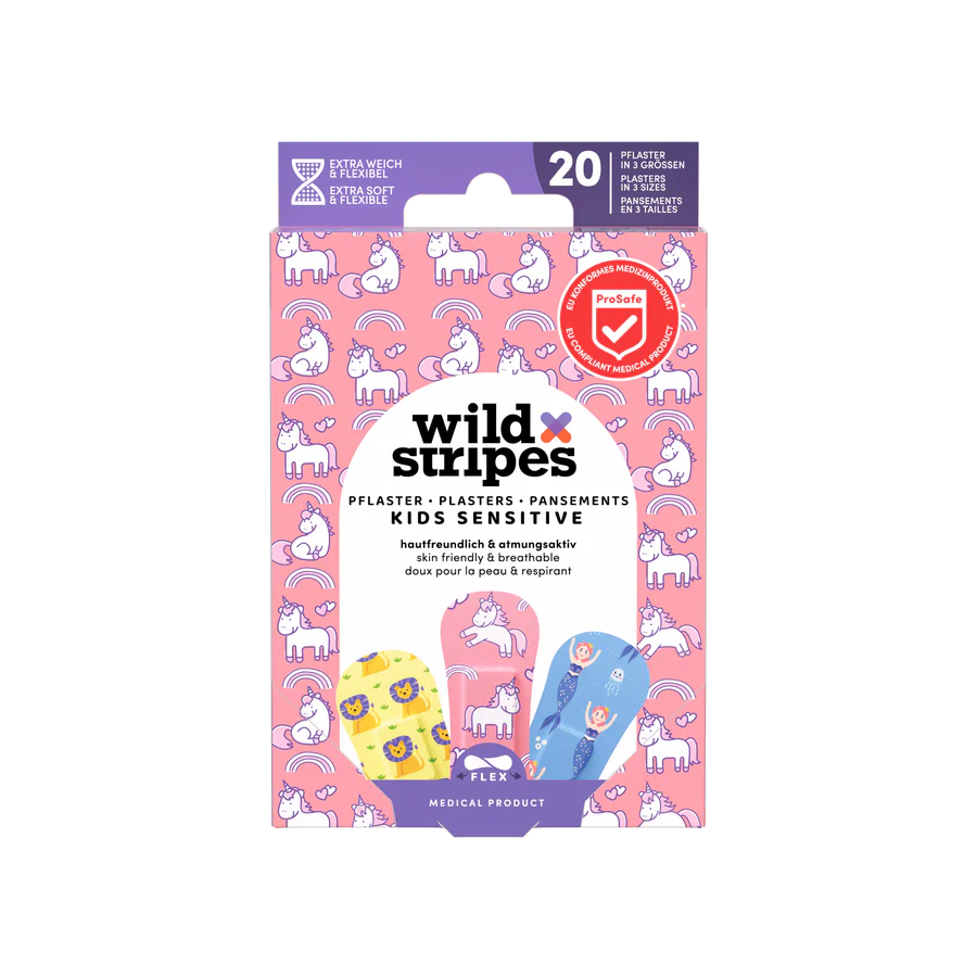 “Wild Stripes Classic Sensitive Pastel Fun” ir medicīnisks produkts, kas atbilst ES regulām, piedāvājot ne tikai aizsardzību. Plāksteri ar jautriem rakstiem un pasteļkrāsām katru dienu nodrošina pozitīvismu, vienlaikus nodrošinot uzticamu aizsardzību nelieliem ievainojumiem. Komplekts ir ideāli piemērots cilvēkiem ar jutīgu ādu – plāksteri ir draudzīgi ādai, hipoalerģiski un piedāvā ļoti spēcīgu saķeri pat aktīvam dzīvesveidam.