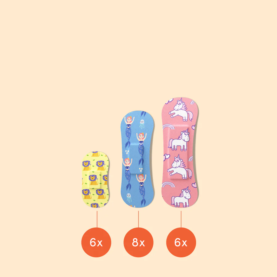 Plāksteri ir ūdensnecaurlaidīgi un uz ādas paliek līdz 24 stundām, nodrošinot aizsardzību pret netīrumiem un baktērijām. Noņemšana ir nesāpīga, pateicoties maigam līmai, un neizraisa ādas kairinājumu. Patentētās formas un krāsainie dizaini padara plāksteru valkāšanu jautru gan bērniem, gan pieaugušajiem. Ideāli piemēroti lietošanai mājās, skolas somās vai ceļojumu laikā.